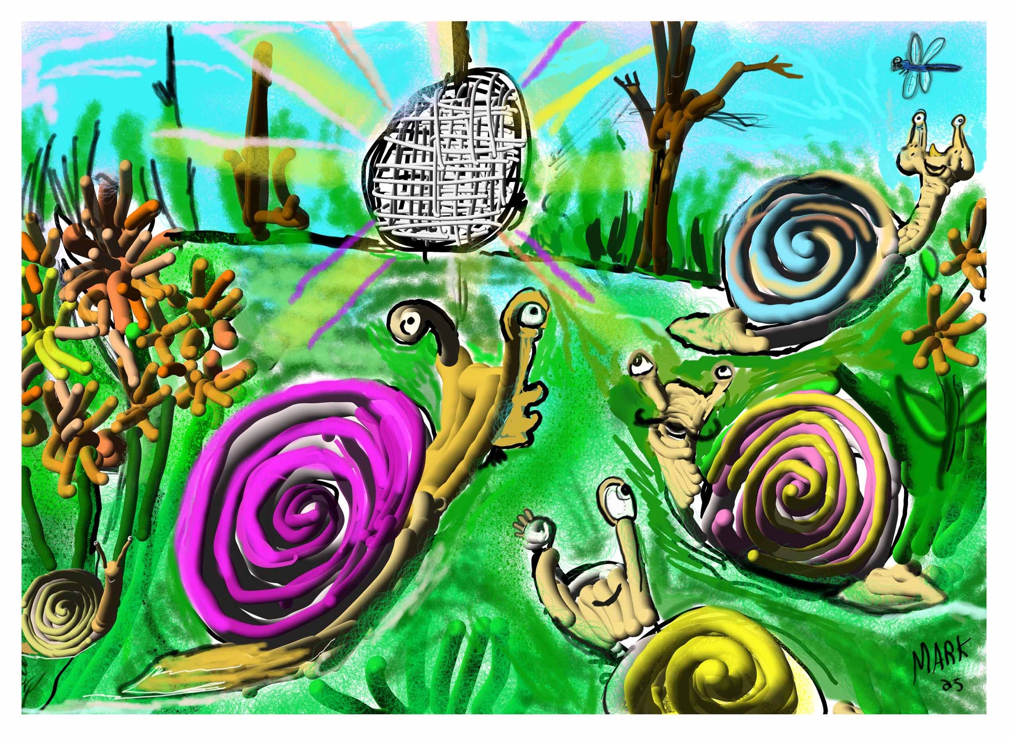 5x7 mini print  " Disco Snails "  signed in poly sleeve